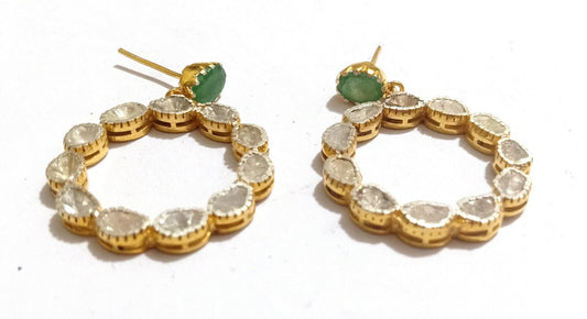 Aros Diamante Polki Pave natural Esmeralda Preciosa, Plata 925 chapado oro 18k Milo