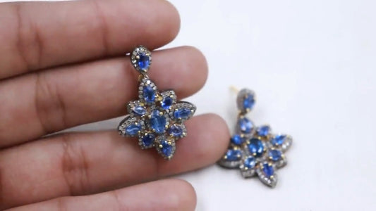 Aros Diamante pavé natural Piedra Preciosa Cianita Tanzanita Plata 925 chapado oro 18k Gasher