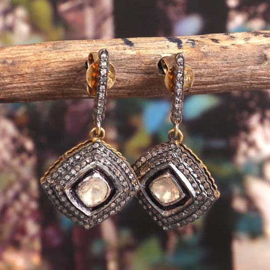 Aros Diamante Polki Pave natural gota Plata 925 chapado oro 18k Gem