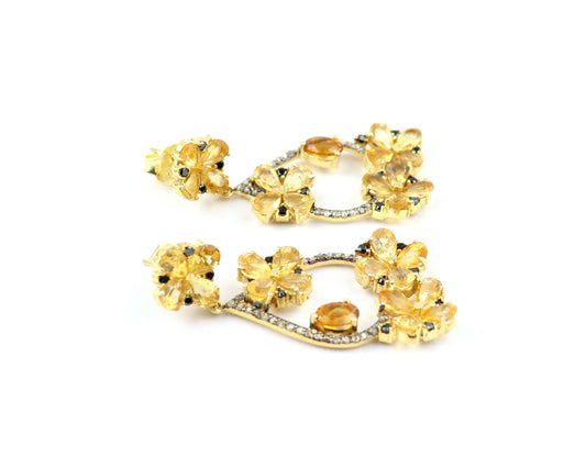 Aros Diamante pavé natural Piedra Preciosa Citrino Plata 925 chapado oro 18k Purna