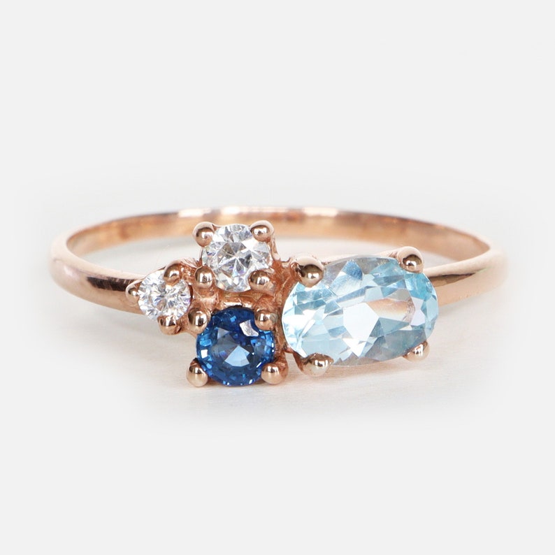 Zafiro azul, zafiro amarillo, zafiro blanco, zafiro naranja-marrón, esmeralda, rubí y diamantes.