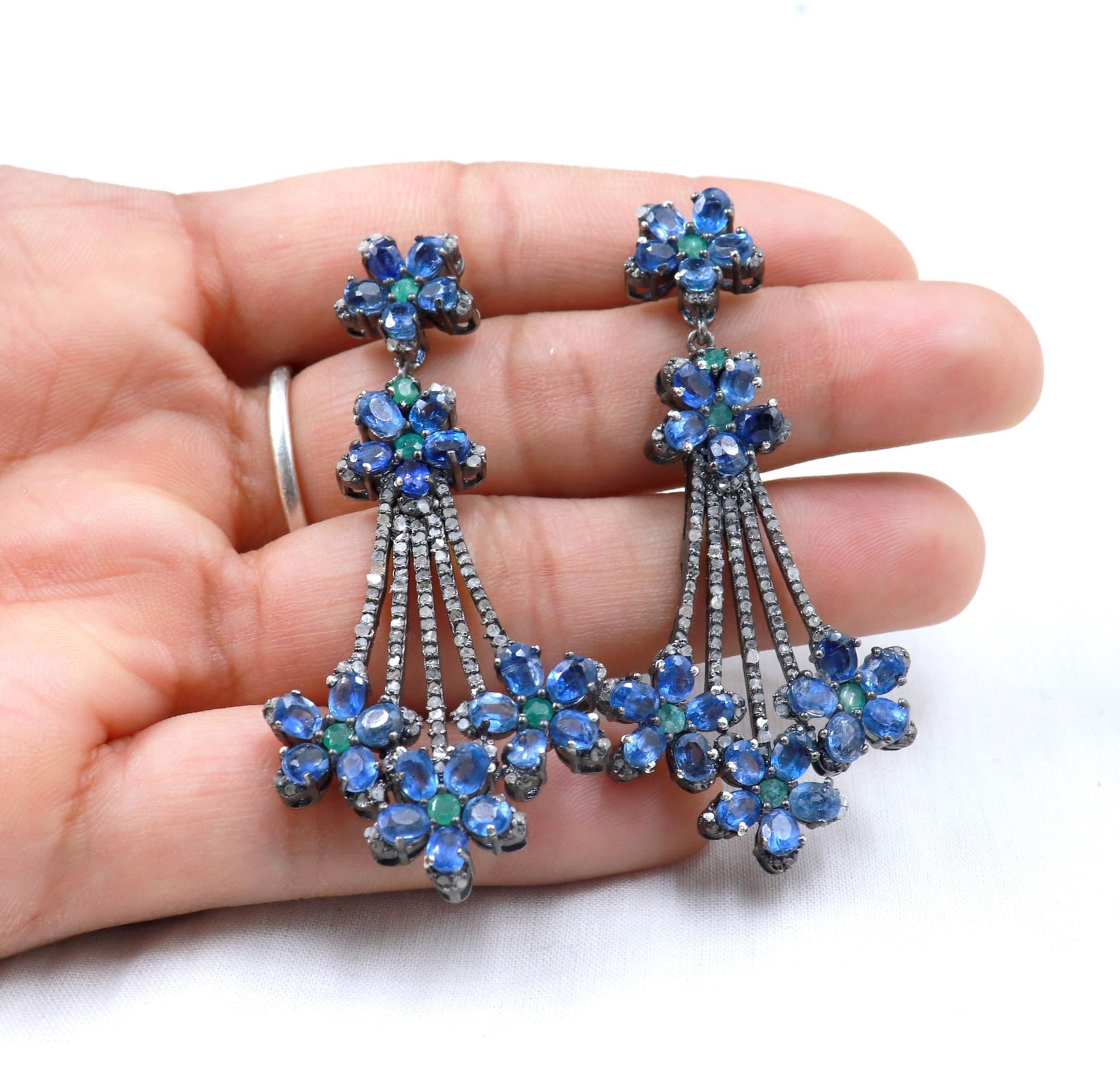 Aros Diamante pavé natural Piedra Preciosa Cianita Esmeralda Plata 925 chapado oro 18k Machha