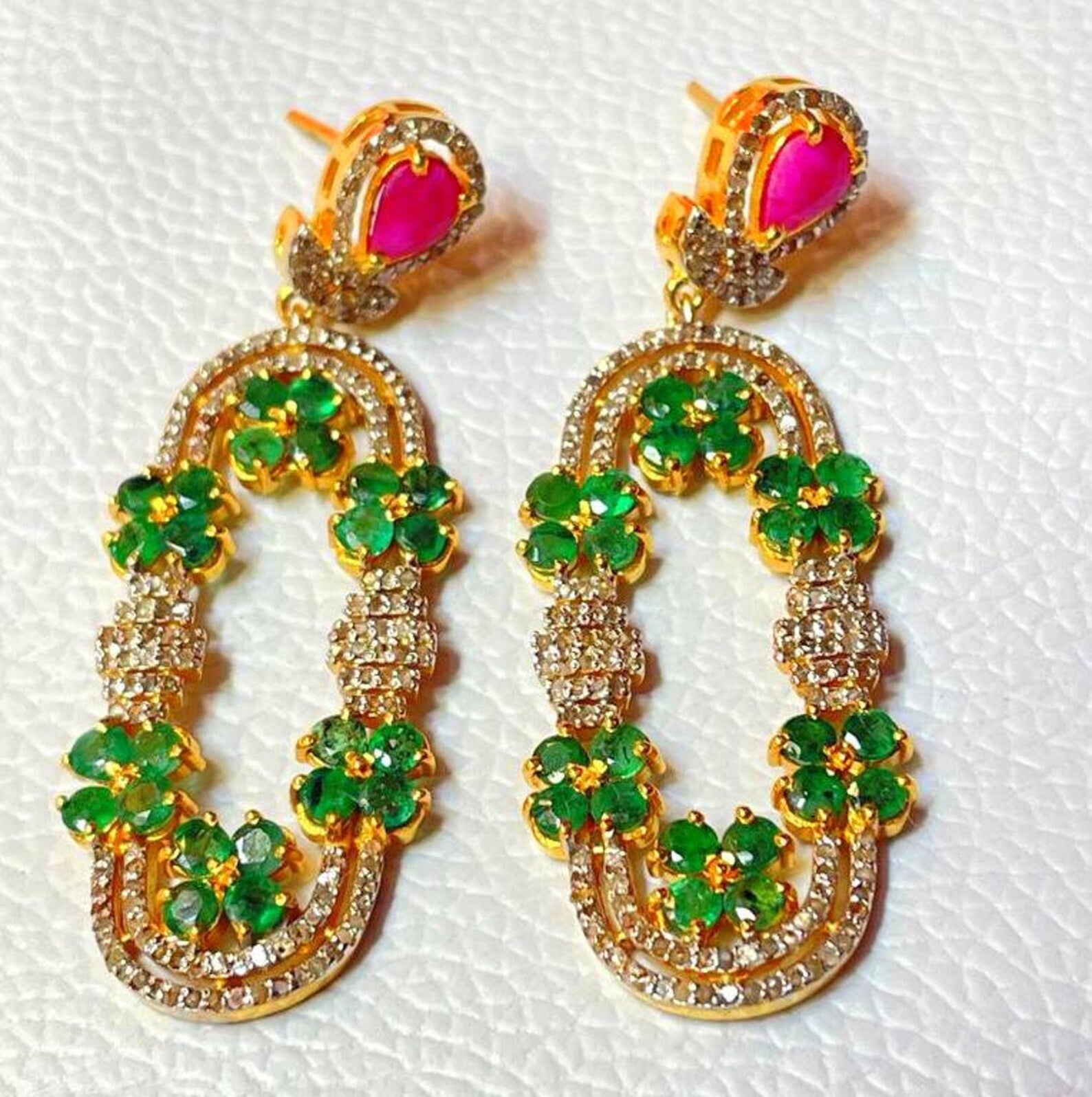 Aros Diamante pavé natural Piedra Preciosa Esmeralda Rubí Plata 925 chapado oro 18k Naula