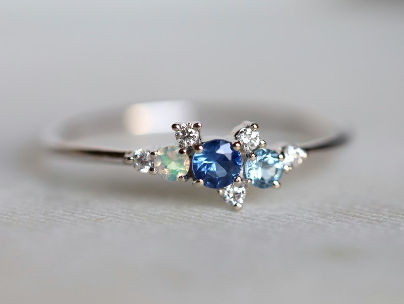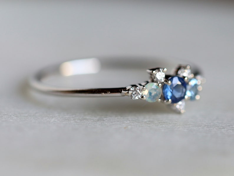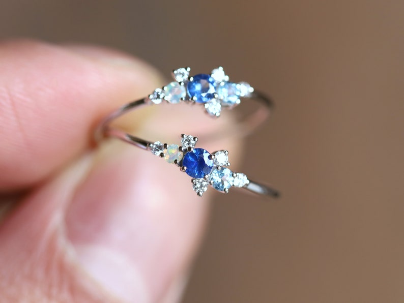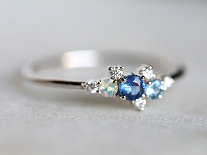 Zafiro azul, zafiro amarillo, zafiro blanco, zafiro naranja-marrón, esmeralda, rubí y diamantes.